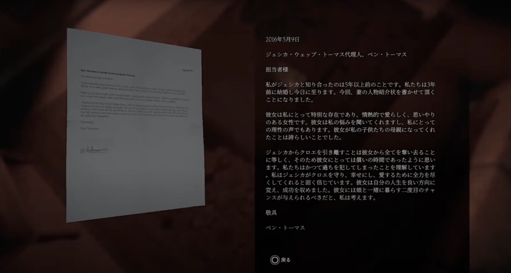 僕はこのゲームをやる前に元になった映画を観ました。映画自体は、都市伝説的な謎を元に作られていますが、主人公となる母親(ジェシカ)が薬物中毒であること、娘が呪いの儀式を行なってしまう(触れてはいけないものに触れてしまう)というキャラクター設定も再現されていました。