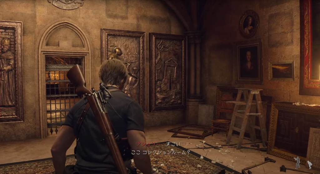 例えば、RE:2の序盤でトイレ前に倒れたロッカーを立て直すシーンや、囚われたエイダを助けに行く前のシーンなど、非常に印象的なシーンを思い出させる要素が『BIOHAZARD RE:4(バイオハザード RE:4)』には多く存在しています。
