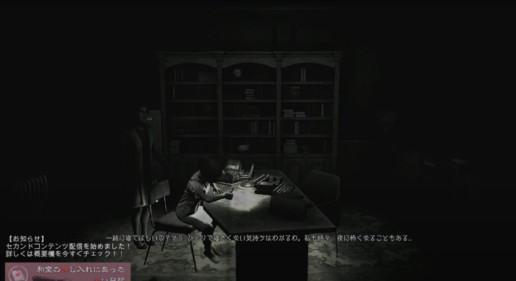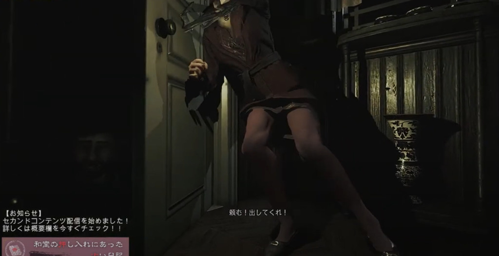 家の中を探索していると、突然ドアの向こうから『得体の知れない何か』がドアをこじ開けようとしてきます。それを必死で食い止めると、この家には何か奇妙なものが渦巻いているのではないかという疑念が漂ってきました。どうやらハッシャーの家族さえも、行方が分からなくなっており、それはハッシャーが取りつかれてしまった『何か』によるものではないかという疑問が浮上します。